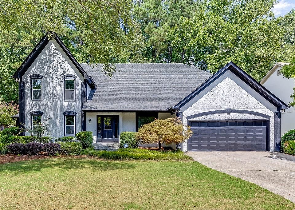 Get the best of both worlds with this fully renovated home located on a quiet suburban street just blocks away from urban conveniences. This home has been fully remodeled with high end finishes. New windows, new LVP on the main floor, new carpet on the upper floor, new Google Nest thermostat, new interior and exterior paint and garage doors. Upon entering the home, you are greeted by high volume ceilings and bright light. On the right, there is an oversized dining room with curved accent wall and vaulted tray ceiling with custom leaded glass accent window that allows light to pour in without compromising privacy. On the left there is a flex space with a wall of built in shelving that could be used as a study/library/home office. Ahead is a two-story great room with a fireplace flanked by bookcases and storage cabinets and french doors that lead out to a deck and the heavily wooded back yard. This open floorplan has the kitchen with views to both the breakfast room and keeping room. The kitchen boasts all new appliances, oversized sink, quartz countertops and a beautiful rustic brick accent wall. The breakfast room has a built in desk perfect for a computer for work or study. The keeping room has a vaulted ceiling, walls of windows and built in cabinetry. Another set of french doors offers additional access to outdoor living. The primary suite on the main level is an owner's haven with high ceilings, bright light and a private secondary deck to enjoy a morning cup of coffee or an evening glass of wine. The bathroom is completely renovated with a free standing slipper tub, his and hers vanities, frameless glass shower and all on-trend matte black bath hardware and accessories. Off of the spa-like bathroom is an amazing custom fitted closet system with a built in wall safe. A powder room and multiple closets round out the main level. Upstairs there are 3 additional bedrooms and a bonus room. One bedroom is an ensuite with a fully renovated bath and two bedrooms share one additional bath. Both baths are fully renovated with quartz countertops, new tile, fixtures and vanities. The secondary bedrooms have barn doors for easy, but stylish access to the closets. The bonus room can be used for an upstairs office, study space or kids playroom/hang out area. The laundry room rounds out the upper floor. The backyard is a private oasis lushly landscaped with a heavily wooded treeline on the back and steps up to a sitting area surrounded by trees and bushes. Attractive rock pathways allow for easy walking from one space to another. Flat front and backyard. Just bring your personal belongings, move in, and enjoy all that this home and area have to offer.