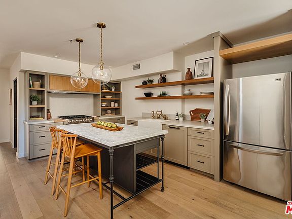 Welcome to the Westside's premier live/work residence, perfectly situated on Main Street-one of the main arteries connecting Venice and Santa Monica. This completely upgraded 2BD, 1,860 SF loft showcases designer touches throughout, featuring unlacquered brass faucets from Waterworks and Newport Brass, marble counters, Kelly Wearstler lighting, and custom linen curtains hung from 20-foot vaulted ceilings. As you enter, you'll feel the warmth of the French oak floors and the inviting kitchen, designed for entertaining. The kitchen features a new Viking range, marble, custom-painted cabinets, and brass fixtures. Beyond the kitchen, you'll find an upgraded powder room and a custom-built office that can easily double as a third bedroom, if needed. The spacious living and dining area is drenched in natural light from the vaulted ceilings and wall of glassthe true heart of the home. Just off the living space, a private patio offers plenty of room for lounging or al fresco dining. The second level showcases a grand primary suite with expansive custom closets and a spa-inspired ensuite featuring dual vanities, a marble and glass walk-in shower, a Japanese soaking tub, and a private water closet. The second bedroom includes a custom solid oak built-in closet and an elegant ensuite with designer wallpaper, creating a serene retreat for guests or family. Secure, gated side-by-side parking for two cars, additional storage, and convenient guest parking enhance the home's effortless livability-all just a short walk from the beach, Abbot Kinney, Rose Avenue, and many of the Westside's premier attractions.