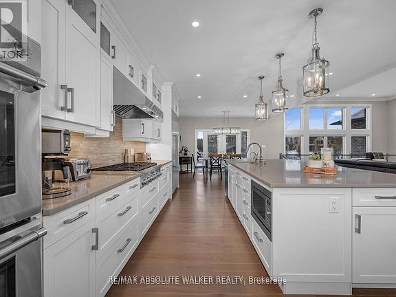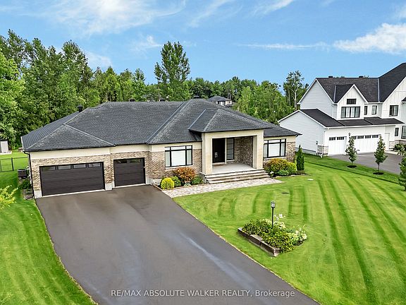 Step into this stunning custom John Gerard bungalow, featuring an expansive 3400 sqft of main-floor living space, enhanced by over 2000 sqft of beautifully finished basement. Exuding luxury and sophistication, this full brick residence is adorned with high-end finishes throughout. The main floor showcases, timeless trim work, elegant hardwood floors, tile, and soaring ceilings ranging from 9 to 12 feet, contributing to the home's grand ambiance. A fully functional main floor laundry room and pantry room offer convenience, while four spacious bedrooms (one currently used as an office) on the main level, along with a fifth bedroom and full washroom in the basement, accommodate families of all sizes.The gourmet kitchen is a culinary delight, equipped with top-tier Thermador appliances, soft-close drawers, and cupboards, and adorned with sleek quartz countertops in the kitchen and all washrooms. The basement is an entertainer's paradise, boasting a large recreation room, wet bar, billiards area, full gym (easily convertible to a sixth bedroom), and ample storage space with direct access to the triple-car garage. The property is situated on an oversized 1.1 acre lot, larger than neighboring properties, and includes a wooded area that ensures privacy and seclusion. This exceptional property perfectly combines style, comfort, and functionality, making it an ideal place to call home.