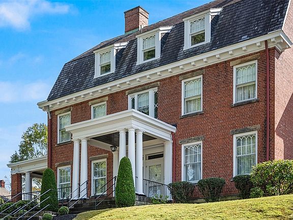 Affordable, Accessible and Aspirational Living. Perched above the Monongahela River, The Downer House is a stately Colonial Revival residence built in 1903 by local developer Samuel Miller Downer. With over 3,800 square feet across three finished floors, this six-bedroom, three-bath home blends historic grandeur with thoughtful modern updates. Original fir and pine floors, fluted inlays, barley twist balusters, custom millwork, and coved plaster ceilings showcase exceptional craftsmanship. The six bedrooms are served by three fully renovated baths while a flexible bonus room on the third floor is ideal for today’s hybrid work-from-home lifestyle. A secondary staircase off the kitchen, equipped with a stairlift, adds convenience and accessibility between levels. A wrap-around porch, rear courtyard, and two-car garage provide elegant outdoor living and convenient flat rear access. Lovingly cared for by the same family for over 40 years, The Downer House is ready for its next chapter.