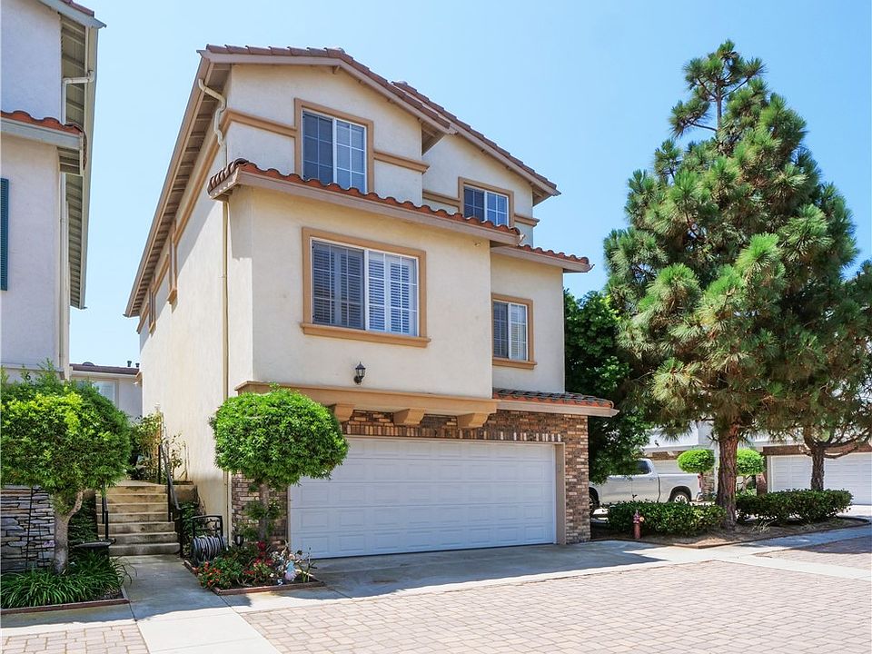 including Stunning Custom Stained Natural Wood Staircases. All New Paint throughout the home and Custom Cabinet Finish. Relax by the beautiful Fireplace and enjoy Abundant Natural Light courtesy of Oversized Sliding Glass Doors and Arched Windows Above. The Kitchen and Dining area offer an ideal environment boasting Granite Counters, Kitchen Island and Breakfast Bar. A Cook's Stove Top, Custom Iron Toned Backsplash and Stainless Appliances. The Family Room Adjacent to your Kitchen is the ideal space for TV and Media Entertainment. Step out to Relax on your Private Patio area with Wood deck & Astro turf. Also included is a Dog Run with Astro Turf. Retire upstairs to the Generous Primary Bedroom, with an Incredible Custom (designed by the owner) Walk-in Closet and a Graciously Appointed en Suite bath. Two more sizeable bedrooms, Two and One half baths, and a Direct Entry Two-car garage Complete this Spacious Open Concept Floor plan. Make your Home in this Private Gated Planned Development Community of Sixteen Units, Located Close to Trendy Restaurants, Shopping centers, Renowned Schools, Dog Park and all that the South Bay has to offer!