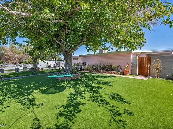 Charming home just minutes from Downtown Las Vegas and the Fremont Street Experience, with quick access to the I-95, shopping, grocery stores, and restaurants. The floor plan includes 3 bedrooms and 2 bathrooms along with several additional finished rooms, offering flexible space for a home office, guest area, or hobbies. Enjoy a well-kept front, back, and side yard that adds to the curb appeal, plus convenient community access to the Las Vegas Strip. Move-in ready and versatile, this property is ideal for both comfortable living and investment potential.