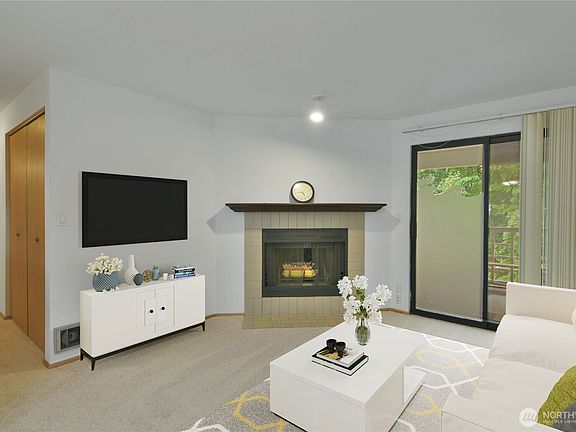 Wood fireplaceIn-unit washer and dryerFresh interior paintDining areaExtra hallway storageNew flooring