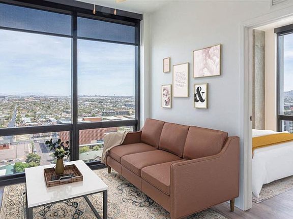 Find your luxury apartment in Phoenix, AZ, at JOY on 4th Apartments! JOY on 4th Apartments offers studio, 1, 2, and 3-bedroom floor plans. Each home features gourmet kitchens, premium appliances, and expansive floor-to-ceiling windows. You'll appreciate having quartz countertops, wood-style plank flooring, and walk-in closets with modular storage systems. Elevate your routines at the high-end community amenities, like the Sky Lounge showcasing gorgeous downtown views, the rooftop pool with a spa, the modern fitness center, and the terrace with fire pits and grills.Located in the Innovation District, JOY on 4th is near the Roosevelt Row Arts District and within walking distance from several popular restaurants and bars. Commuting is easy with 1,800 businesses nearby, including ASU, Bank of America, and Wells Fargo. Chase Field, Cityscape, and Herberger Theater Center are less than a mile away for entertainment.You belong at JOY on 4th Apartments in downtown Phoenix, AZ!
