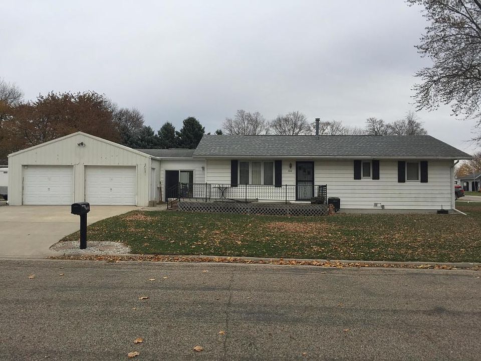 Here is a great ranch home. Complete main level living is offered that includes a nice kitchen with great cabinet space, dining room, living room, 2 nice bedrooms and a 3/4 bath that includes the laundry. This home has vinyl siding and newer shingles. There is a double garage attached by a nice breezeway with sliders and a detached 45 x 24 garage. Located on a large corner lot.