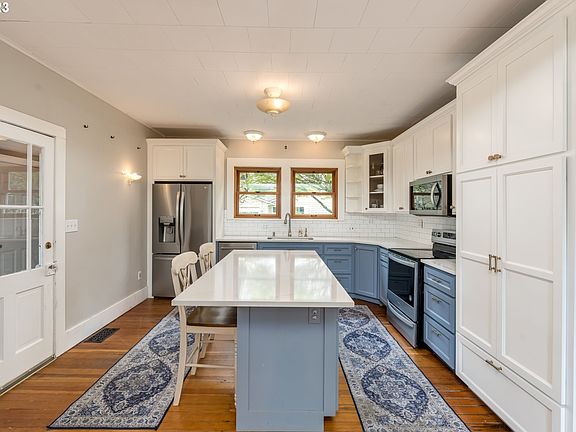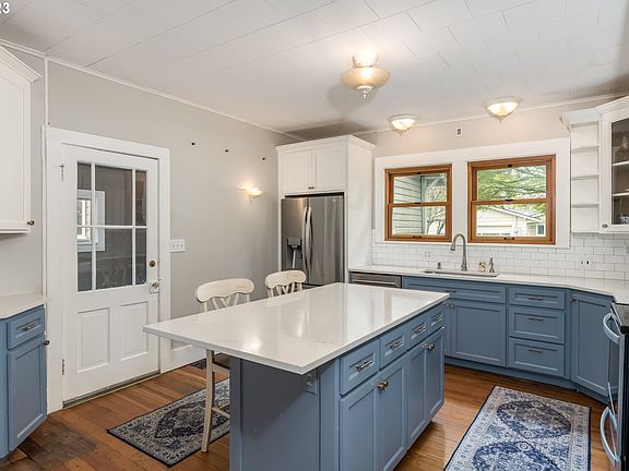 Charming 1900s cottage home with exceptional amenities on corner lot! Fully remodeled kitchen with quartz counters, under-mount sink, insta-hot, updated cabinets, and stainless steel appliances. Remodeled bathrooms with white tile floors, tiled showers, and claw foot tub! Home boasts hardwood floor throughout entire home! Cozy family room with original built-ins. Beautiful fully fenced yard with new large Trex deck and garden. Nice location that is walking distance to George Fox Univeristy, parks, shopping, and restaurants! New plumbing 2023. Bedrooms: Two bedrooms with closets plus one small non-conforming bedroom upstairs, one non-conforming bedroom/office downstairs, and one large bedroom and closet in the garage. Please see attached amenities document for detailed list of remodel!