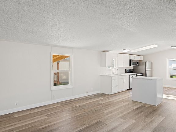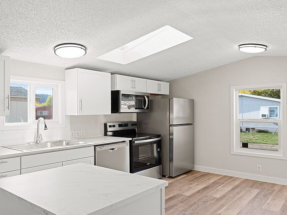 Move In Ready In The Best Park In Creswell! This 2bed/1bath MFH in Creswell Court has been tastefully updated with new flooring throughout, light fixtures and interior paint. Remodeled kitchen features all new cabinets, quartz countertops, stainless steel appliances with movable island, and pantry. Skylight brings natural light all day long. Bathroom includes new tub surround. Primary bedroom has large closet with mirror doors. Carport with additional storage shed for all your tools. Space rent is $655/month. Park approval needed. All ages park.