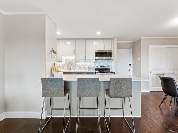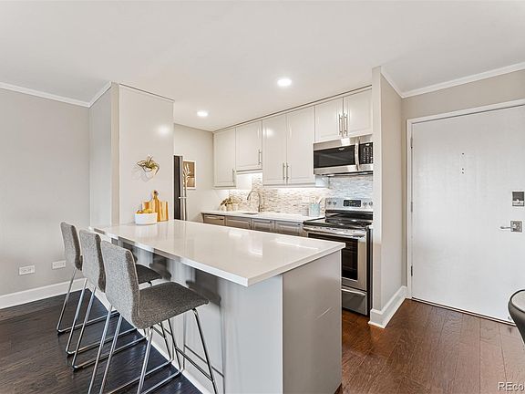 Welcome to The Florentine and this beautifully remodeled one-bedroom condo. Centrally located in Capitol Hill, an abundance of restaurants, bars, and specialty shops can be found along nearby 6th and 7th Avenues. Downtown, Cherry Creek, and Wash Park are all just a short trip away as well. Your new home comes thoroughly equipped for modern living with an updated kitchen featuring quartz countertops, updated cabinetry with premium soft-close doors, plus stainless appliances including a built-in microwave and convection oven. Filled with gorgeous natural light, this unit offers engineered wood plank flooring and fresh, new paint. The bathroom is equally impressive with dual sinks, ample storage, new backlit frameless mirrors, a glass-enclosed shower, and a fabulous Japanese bidet. The bedroom is a generous size and provides a spacious closet with newly installed doors. One reserved parking space near a building entrance is included, so you can leave your car behind and head to Trader Joe's and "restaurant row" right down the street. Plus, there's easy access to the Cherry Creek bike path and public transportation. In addition, residents enjoy a well-maintained and secure building with amenities such as 24-hour access to an indoor pool, jacuzzi, steam room, lounge, and fitness center. With so much to offer, this one will go fast! Don't miss out.