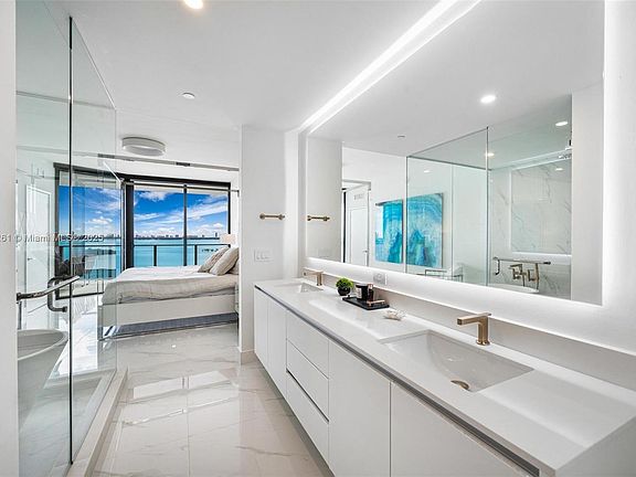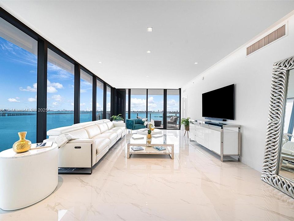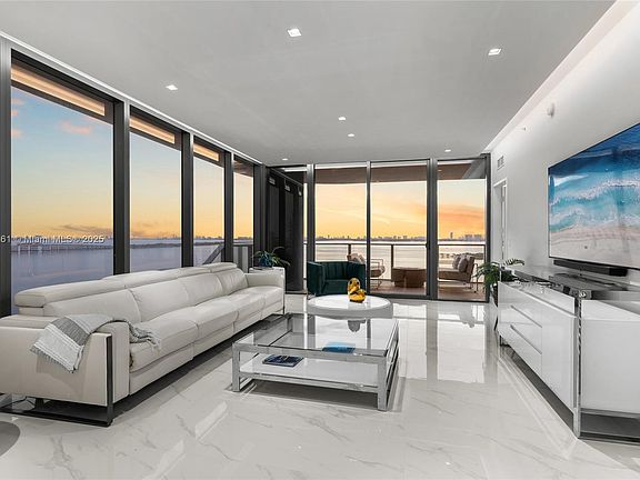 Turnkey and move-in ready, this fully furnished residence with $100K+ in designer upgrades is perfectly positioned on the 12 floor, high enough for sweeping panoramas yet low enough to feel right on the water. Enjoy unobstructed bay, ocean, and skyline views that flow seamlessly from sunrise to sunset in this 4-bedroom + den, 5.5 bath home with maid’s quarters. Custom closets, blinds, and dual private elevator entry add to the elevated living experience. Floor-to-ceiling windows bathe each room in natural light, while spa-style en-suites create a retreat for every bedroom. Aria Reserve, Miami’s largest waterfront residential site, offers 2 acres of resort-style amenities including 3 pools, spa, fitness center, tennis, paddleball, basketball, theater, dog park, kid’s splash pad, and more.