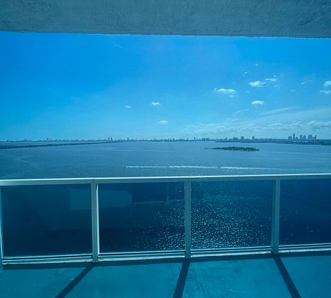 Beautiful condo with fantastic views of bay and Miami skyline. This unit features dark wood floors throughout, spacious kitchen with granite counter tops, new stainless steel appliances, 14 ft ceilings, huge 850 ft. wrap-around balcony. Master bath with two sinks, marble floors bidet, jacuzzi, and shower.