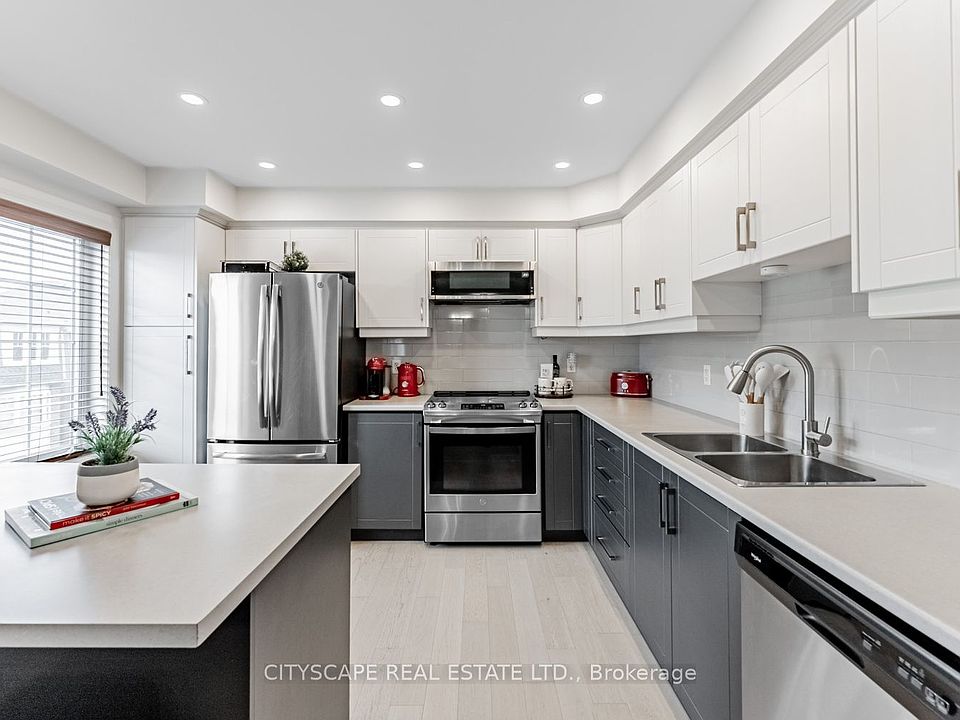 Pending! Ask Realtor for details! 2 bed, 2 bath plus Large Den with a roof-top terrace! Rare opportunity, this is a rare unit, only few ever built like this in the entire complex! Great location! This unit is on the interior of the complex, next to a Parkette. School, Shopping Plaza and Park next door, and even larger plaza with Home Depo, Shoppers, Superstore is on the other side of the complex. Rare, stretched, oversized unit! While most top units are 1030 sq. ft, this rare and reverse layout model is approx 1200 sq ft of space, all above grade! Beautiful Kitchen with Island, Steel Appliance package, proper space for Living, Dining too. Primary Bedroom with Ensuite Bath and a Large Closet. 16 foot ceilings in the hallway, Unique and very private Den on top, with large sunny deck, gas hook up for BBQ and westerly exposure. Newer, composite decking. Comes with 2 parking spots (1 in garage and 1 in front of it). See video tour for all the details!