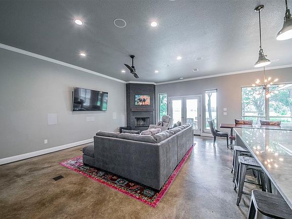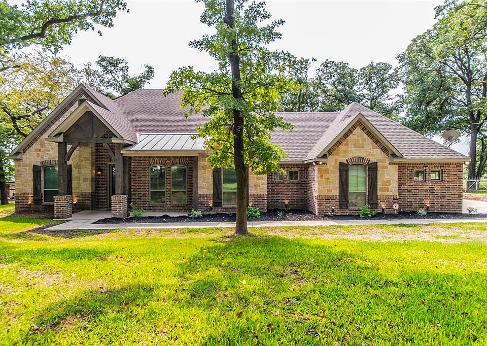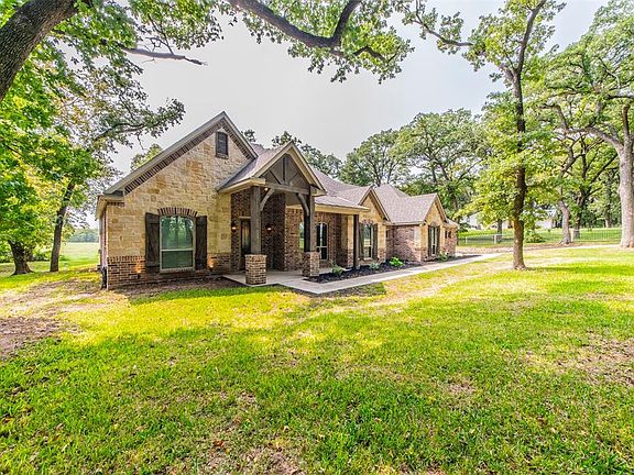 Wonderfully appointed Custom built home on 5 acres! Surrounded by large oak trees, this gorgeous home features an open floor plan with 3 bedrooms, 2.5 baths and a large 3 car garage. The kitchen features granite counters, custom cabinetry, Double ovens and large island. Stained concrete floors throughout all the living areas. Large master bedroom with stunning master bath showcasing a large garden tub and separate walk-in shower. The backyard over looks the flowing pasture with a large covered patios that is great for entertaining. Speaker system in living room and under back patio. Sprinklers esteem in front with well water. Great property for horses & livestock! Small chicken coop. Located in Springtown ISD.