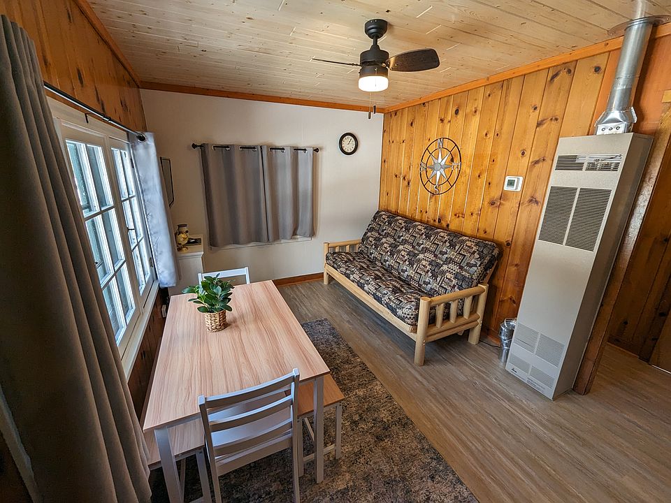 Located on the beautiful Fish Hook River, Riverside Point Resort/Motel provides a comfortable, well-maintained setting for both short- and long-term stays. Within this charming property, Cabin #3 stands out as a fully updated and inviting option for winter renters. Recently remodeled in 2024, the cabin offers the perfect blend of rustic charm and modern comfort. This fully furnished and heated 2-bedroom, 1-bath space features queen beds in each room, a full-size futon in the living area, and all the essentials for a cozy winter stay. Guests enjoy included Wi-Fi, parking for up to two vehicles, and the peaceful beauty of Riverside Point Resort a lovely setting even in the winter months. With convenient on-site coin laundry, a welcoming game room, and on-site management for added peace of mind and security, Cabin #3 is an ideal choice for anyone seeking comfort, convenience, and a quiet seasonal retreat.