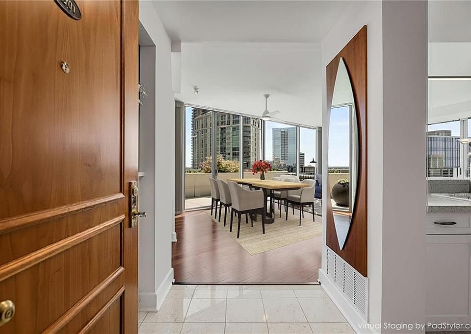 Sweeping Views, Unrivaled Luxury — Welcome to Penthouse 2201 at Park Regency Perched high above the city with panoramic vistas stretching east, north, and west, Unit 2201 is a rare gem—one of only a select few in Park Regency boasting extended balconies and truly breathtaking views. This one-of-a-kind penthouse offers an extraordinary blend of elegance, comfort, and sophistication. Step through the front door and be immediately captivated by a dramatic wall of windows that flood the home with natural light and frame the skyline like a work of art. The beautifully updated kitchen is a chef’s dream, complete with premium appliances, a wine bar with built-in fridge, and seamless flow into the expansive great room—perfect for entertaining. The generous balcony space serves as an extension of your living area, ideal for al fresco dining or simply soaking in the views. The oversized guest suite features a luxurious ensuite bath, a spacious walk-in closet, and direct access to one of the balconies. On the opposite wing, the gracious primary suite offers a serene retreat, complemented by a large laundry room and a third bedroom—currently configured as a well-appointed home office with custom built-ins and abundant storage. Every room in this home enjoys access to the wraparound balconies, creating a seamless indoor-outdoor lifestyle. Park Regency presents an incomparable opportunity to enjoy the ultimate in Buckhead living enhanced by attentive services, gracious amenities and security features including a grand lobby with welcoming Lobby Ambassadors, valet parking, attentive staff including engineering, housekeeping, maintenance and management, electronically monitored access controls manned 24/7/365, gated entrance and grounds and gated secured parking garage, event room with full catering kitchen available for homeowner use, resort style pool and hot tub, fitness center with steam and sauna, rooftop terrace, climate controlled wine cellar where each homeowner has an assigned bin, 2 guest suites available for owners to rent for their guests, convenient pet walk, emergency call systems in every home, and assigned storage with every home. The ultimate in Lock and Leave!