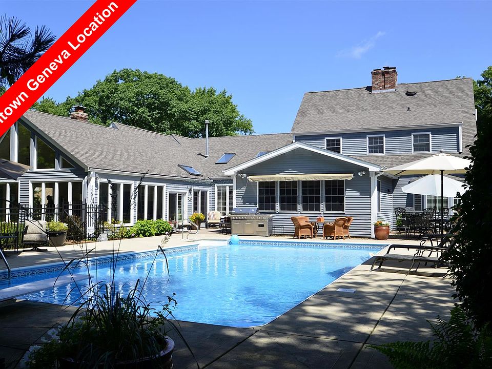 This gorgeous home sits on almost one-half acre in a peaceful location within walking distance of the amenities of downtown Geneva, the Metra and so much more. The exterior offers curb appeal plus with attractive landscaping, a covered entry, a courtyard entry, walkways made from Geneva's original brick roads, a relaxing brick paver patio and large heated inground pool perfect for entertaining! Entering through the front courtyard, you are greeted by tasteful décor, lovely wall colors, custom millwork, high ceilings and the finest appointments to please the eye. The kitchen with gathering area has all the upgrades you would expect, and south-facing windows overlooking the private yard. The large and sunny family room features vaulted ceilings, woodburning bee-hive fireplace (Kiva) and skylights. It is adjacent to the game room with full bath, custom cabinetry and stage lights. The formal dining room features a woodburning fireplace with custom tile surround. You will find another beautiful fireplace in the elegant master suite. The master bath features separate vanities, large walk-in closet, and dressing area. Bedrooms 2 through 5 can be found on the second floor. Bedroom 2 has a private bath and bedroom 5 is a complete living area that could be a guest or in-law suite, complete with kitchenette. A finished basement includes a second family room with woodburning fireplace, an exercise room with storage bench, and plenty of storage space under the stairs and in the unfinished portion. Enjoy peace of mind with a whole house automatic 20Kw gas-powered Generac generator. The amenities of this home make it perfect for entertaining, or just relaxing and taking in the beautiful views. Combined with the outstanding location and top-ranked Geneva schools, this truly can be your forever home!