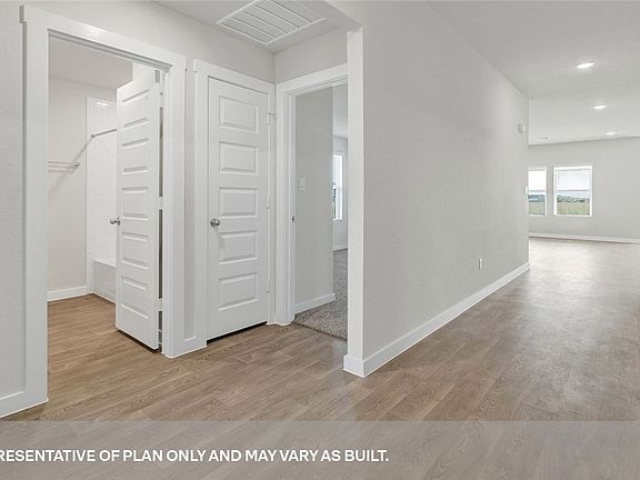 The Courtland includes vinyl flooring throughout the common areas of the home and the primary bedroom, and carpet in the secondary bedrooms. All our new homes feature a covered back patio, full sod, an irrigation system in the front and back yard, and full gutters. This home includes our America’s Smart Home base package, which includes the Amazon Echo Pop, Front Doorbell, Front Door Deadbolt Lock, Home Hub, Thermostat, and Deako® Smart Switches.