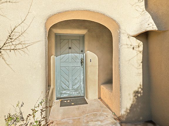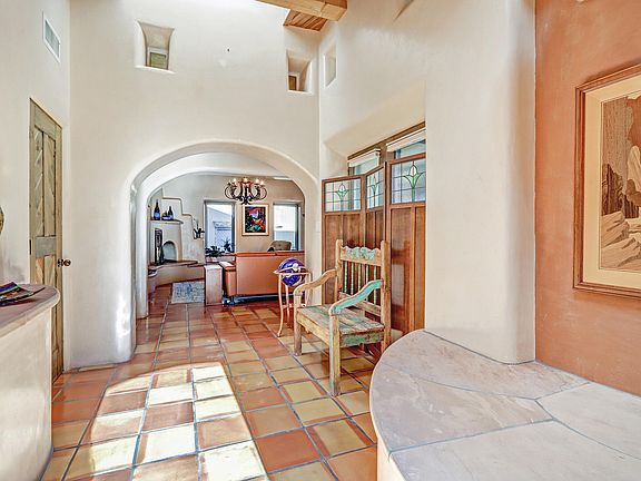 Located in the heart of the Village of Los Ranchos and overlooking a charming apple orchard, this custom adobe residence offers striking Southwestern design paired with true artisan adobe construction. Designed for effortless indoor-outdoor living, every room connects to peaceful courtyards, covered portals, and private patios enhanced by custom water features. This exceptional home is richly appointed with radiant floor heating, a whole-home sound system with interior and exterior speakers, traditional kiva fireplaces, hand-crafted wood doors, a Jacuzzi tub, and beautifully integrated architectural niches throughout. Homes of this quality and character in Los Ranchos are rarely available and highly sought after. Additional bonus seller added a solar system to the home.
