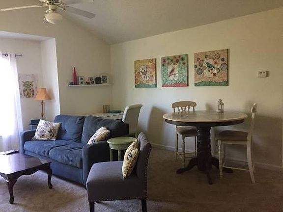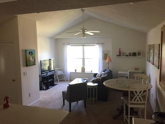 Tenant will have the current lease transferred to them so admin fee and pet deposit are already covered. Deposit is also greatly reduced (usually $250). Will need to pay an application fee of $45 to be cleared by leasing office to assume lease. Great space with a vaulted ceiling in the living room. Open floor plan with wonderful natural light, trees out back. Very welcoming community, quiet neighbors. Large walk-in closet! Pets allowed (subject to landlord) with pet fee of $20 per month for the first pet, $35 for two pets. Second floor apartment. Community: fenced pet park sparkling pool poolside wi-fi Apartment amenities: ceramic tile in foyer dishwasher garbage disposal frost free refrigerator ice maker mini blinds throughout wall to wall carpeting washer/dryer connections ceiling fans in living room and bedroom vaulted ceilings *Not furnished Utilities not included in rent price, tenant will need to complete application through leasing office to assume the duration of the lease (7 months), option to renew lease