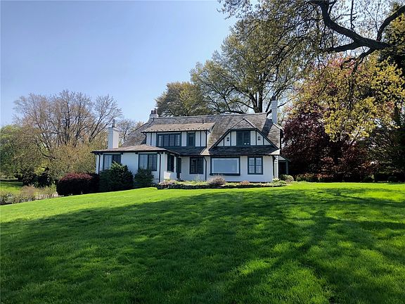 Lovely waterfront English tutor home overlooking Lake Ontario. Sprawling beachfront property with beautiful gardens. Large living room with fireplace and wood beamed ceiling and trim. French doors open to a screened in porch. Banquet dining room with glass corner cabinets. Family room with fireplace and views of the lake. Opens to the outdoor patio. Wonderful gourmet kitchen with a corner built-in banquette. First floor den/office with adjoining laundry room. Upstairs has 3 bedrooms, each with attached bath and walk-in closets. Partially finished basement with 250 sq. ft. recreational room. 4 car heated garage. dining room chandelier not included !!
