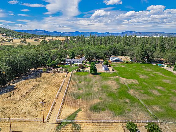 Welcome to your private riverfront retreat! This stunning single-level estate sits on 8+ manicured acres with around 300 ft of low-bank frontage along the scenic Rogue River Run area of the Rogue River. Parcel has partial fencing and large paddocks. It offers privacy and space for gardens, hobbies, RVs & more. Enjoy the scenery from the covered patio overlooking lush grounds. Follow a private path to your serene riverfront, complete with a custom treehouse with zipline. There is peaceful river seating area, perfect for morning coffee or sunset views. Inside, the home features a spacious primary suite with a luxurious bath, walk-in closet & private office. The gourmet kitchen offers generous counter space, premium finishes & garden views. A separate wing provides additional bedrooms and baths for guests or family. Multiple outbuildings offer ample storage and space for all your needs. A rare opportunity to enjoy comfort, elegance & natural beauty in the heart of Rogue River living.