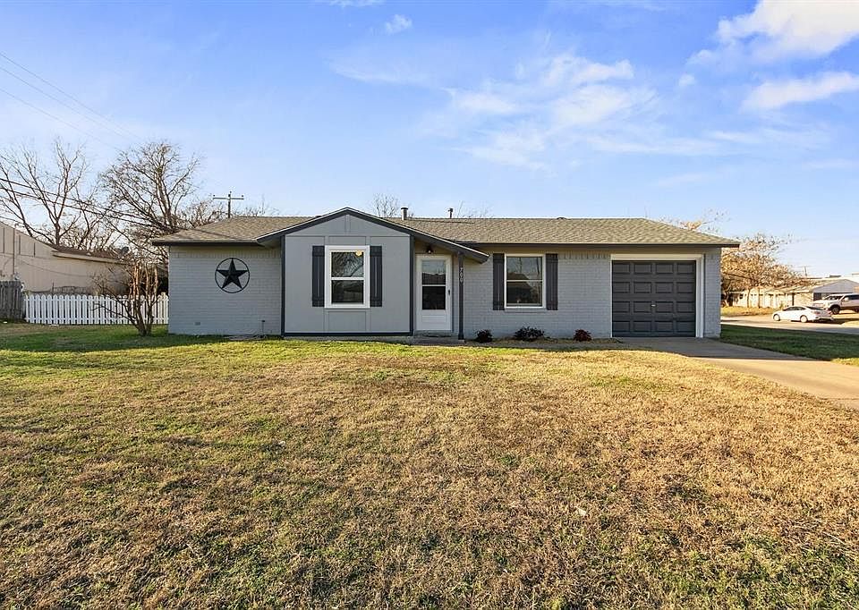 Cute remodeled home on a corner lot with a white picket fence. New or newer everything: roof, windows, ceiling fans, floors, blinds, patio, counter tops, kitchen cabinets, fence, paint inside and out, dishwasher, back splash, interior doors, 175 AMP electrical service, switches, outlets, light fixtures, faucets, toilet, and garbage disposal. Big fenced backyard with a workshop. One car garage with a window unit. Great location, great schools, simply cute and adorable. Move in ready!