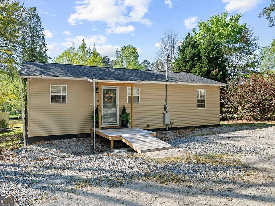 This cozy 2 bed, 2 bath Fee Simple cottage offers everything you need for a relaxing and comfortable stay - and all furnishings come with it! If you are looking for a family vacation home for fun-filled adventures, a peaceful retreat to relax in, or a revenue-generating investment home, this cottage has it all! Located between Milledgeville and Sparta, Georgia, on the shores of Lake Sinclair. Enjoy fishing, boating, swimming, kayaking, and jet skiing on the lake, or explore the nearby attractions such as the Oconee National Forest, the Rock Hawk Effigy and Trails, and the Uncle Remus Museum. You can also find plenty of restaurants, shops, The Club of Milledgeville, and golf courses within a short drive. Located within 2 hours to the Atlanta International Airport, Fort Gordon and The University of Georgia in Athens. This cute lake cottage has ample parking for cars, boats and your RV (with full hook-ups including 30/50 amp electric, water, septic). The front entrance has a ramp for easy unloading of groceries, your luggage and access for those with disabilities. This home has newer fingerprint resistant, black stainless steel appliances (Sept 2021), and a convection microwave as well. The deep granite sink allows ample space to clean produce, and wash dishes. Lots of cabinet space for your dishes, pots/pans, small appliances and groceries. The large capacity washer and dryer are in a beautiful gray color and stacked to allow you more room. A new 40 gallon hot water heater was installed May 2020. The primary bedroom closet has a keyed lock for you to store personal items if you choose to rent the home. It includes a queen size bed, two nightstands, dresser, desk, and a wall-mounted smart TV. The living room has a cream colored, leather sectional and ottoman, a beautiful old trunk coffee table that offers storage for blankets, pillows etc. There is a large CordaRoy Brand bean bag that is actually filled with memory foam. If you remove the outer cover, there is a full size mattress inside that allows for yet another bed option for guests. The second bedroom has a twin-over-full bunk bed, pak-n-play, and camp cot with linens and mattress. The TV has been wall mounted and the ceiling fan is enclosed in the overhead light fixture that ensures the safety of those sleeping on the top bunk. The large covered deck overlooking the back yard and lake is great for grilling, chilling, or watching TV and Movies on the outdoor TV.