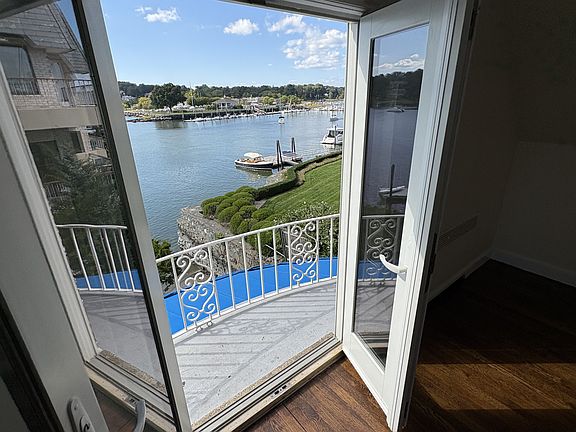 Waterfront studioGeorgian-style brick residenceLong island soundDirect waterfront accessPrivate balcony entranceSunsets over belle havenPier and dock access