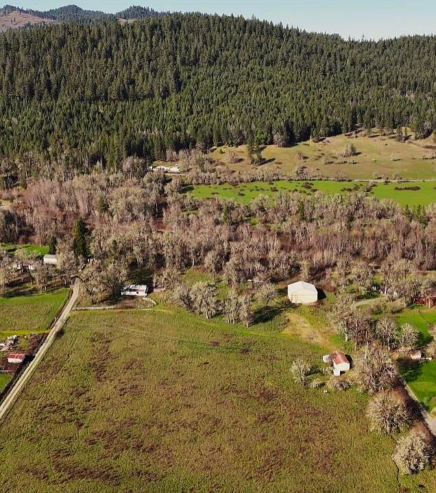 Stunning property with creek frontage and gorgeous mountain views, mostly open and level with beautiful oak trees gracing the property. These 20 acres are zoned RR5 and is currently in two tax lots for a possible multi-family setup or keep it as one estate. The property has water rights dating back to 1891, with an irrigation system including a pump and three phase power, from Grave Creek. There are hand-line risers along the side fence and a trailer of handlines included with the property. There are two wells on the property. Water and power are supplied to all the buildings which include a huge 50'x50' metal shop building, an equipment shed and stable. Soil samples have been done in the past for a possible vineyard. So much opportunity here! Buyer to perform their own due diligence as to the uses and conditions of the property.