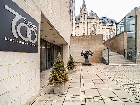 Prestigious living at 700 Sussex Drive one of Ottawa's most sought-after addresses. This spacious 2 bedroom + den, 2 full bath condominium offers an exceptional lifestyle in the heart of the capital. Steps from Parliament Hill, the Chateau Laurier, the Rideau Centre, the ByWard Market, and the scenic Rideau Canal, everything Ottawa has to offer is right outside your door. Inside, the open-concept layout features sleek stainless steel appliances, modern fixtures, and abundant natural light. The den provides flexible use as a home office or media room. The primary suite includes a luxurious ensuite bath and generous closet space, while the second bedroom and full bath add comfort for family or guests .Residents enjoy boutique-style amenities, including a fitness center with sauna, party room, 24/7 security/concierge, underground parking, and storage locker. An unmatched blend of location, style, and convenience at Ottawa's most distinguished address. Some photos have been digitally staged.
