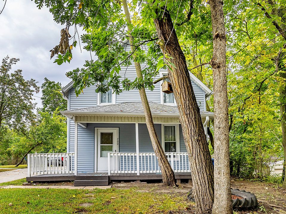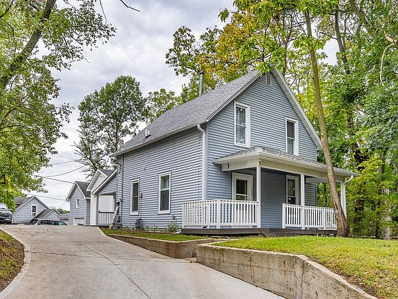 Charming farmhouse style home built in 1890 with modern updates throughout! Major improvements include a new sewer main to the street, updated electrical service, and a brand new driveway with access from both the front and alley. The standout feature is the oversized high-bay two-car detached garage/workshop. Ideal for hobbyists, contractors, or anyone needing substantial shop space. Inside, enjoy the character of an older home with updates completed in the last 10 years. Situated on a unique corner lot, this property also offers a covered front patio perfect for relaxing. A great fit for first-time buyers or those seeking both a comfortable home and versatile garage space.