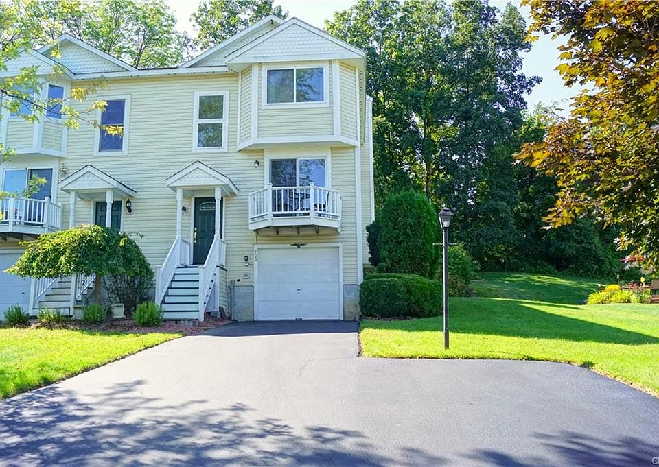 Perfect! Lovely end-unit Town Home on Cul de Sac means privacy & no thru traffic. Updated, ready to move right in - freshly painted from basement up (including deck, porch & garage), new carpet on 1st fl and stairs, hardwoods refinished, professionally cleaned throughout! Enjoy waving to neighbors from roomy balcony off kitchen or sitting on the private deck overlooking the lush backyard. LOTS of natural light makes this Town Home exceptionally uplifting. New landscaping Extra wide Driveway for parking. Roof de-icing system, thermostatically controlled on front of roof new in 2015. 2 minutes from access to 695 and just 20 min to Downtown Syracuse and Auburn. Don't wait - this is a great buy!!