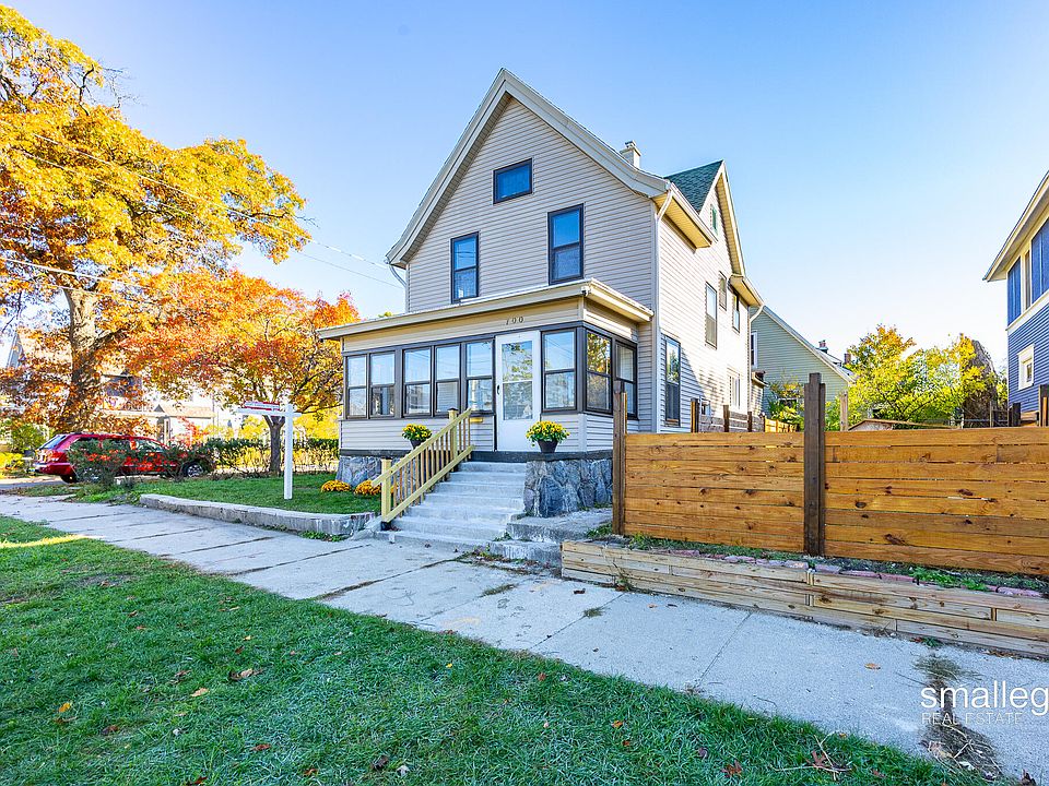 Located just minutes from Heritage Hill, this 4-bedroom, 2.5-bath home blends classic character with modern finishes. The kitchen features granite countertops, marble floors, stainless steel appliances, updated cabinetry, and tile backsplash. The main floor includes a spacious living and dining area with refinished hardwood floors, detailed trim work, a half bath, and a main-level bedroom. Upstairs, you'll find two bedrooms and a full bath, each with fresh updates and natural light throughout. The fully finished lower level adds another bedroom, a half bath, and an additional living space—ideal for guests, an office, or a media area. With a new furnace, new AC, newly renovated bathrooms, new plumbing, and new electricity, this home is truly move-in ready. Conveniently located near downtown Grand Rapids, the Medical Mile, and all the energy of Heritage Hill.