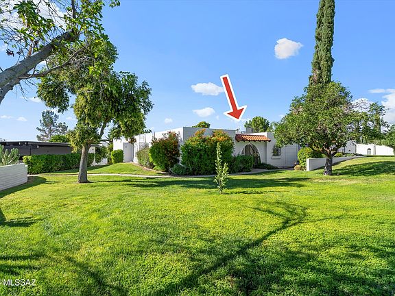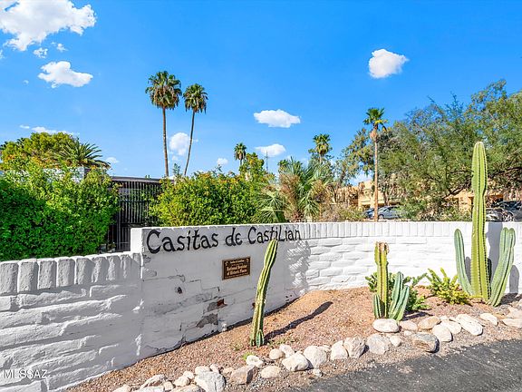 Tucked amongst the orange blossom, grassy knolls & lush foliage in this one of kind community, this rare 3-bed, single-story gem (1,607 sq. ft.) is one of the largest units in the historic 55+ Casitas de Castilian, designed by AZ architect Bennie M. Gonzales. Enjoy 2025 fresh paint & updated electric outlets, 2024 non-slip tile flrs, remodeled master bath, 2022 dishwasher & water htr and various other upgrades. Storage room & carport #11 are both yours. 2 private courtyards! HOA covers: well water, sewer, trash, exterior maint, landscape, streets & blanket insurance policy. Resident interior condo insurance optional per HOA! Low historic taxes almost 50% off at only $1,282.28 for 2025! Heated pool, tennis & more including socials. Coveted Las Lomitas casita comes with home warranty!