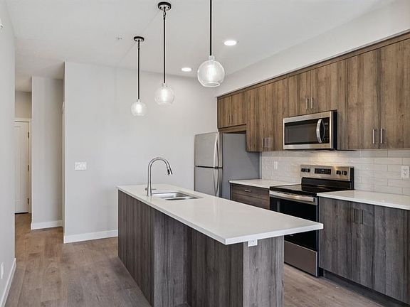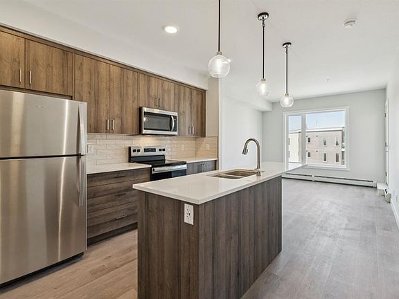 Modern 2-Bedroom Condo in Fish Creek Exchange Welcome to this brand-new 2-bedroom, 2-bathroom home in the 2025 Fish Creek Exchange development, located in the sought-after community of Shawnee Slopes. Offering 732 sq ft (builder size), this thoughtfully designed condo features high ceilings, luxury vinyl plank flooring, and a stylish kitchen complete with quartz countertops, stainless steel appliances, and full-height cabinetry. The open-concept layout extends to a private west-facing balcony, perfect for enjoying morning coffee, summer evenings, or a breath of fresh air with the best Calgary Sunsets. Convenience is built in with titled underground parking and a secure titled storage cage. Just steps from the Fish Creek–Lacombe LRT Station and minutes from the trails of Fish Creek Provincial Park, this home combines modern living with easy access to nature, transit, and nearby amenities.
