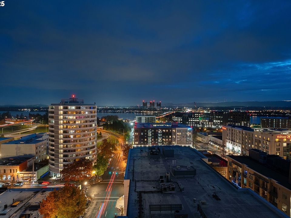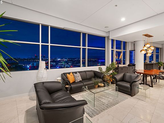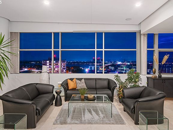 Rare opportunity to own a stunning penthouse in the heart of Vancouver Center with nearly 360-degree views of the Columbia River, city lights, and four mountains and enjoyed from four private balconies. This timeless, high-end remodel features a custom bar, surround sound, herringbone wood and steel barn doors, floating ceiling design, and a chef’s kitchen with Thermador appliances and two wine/beverage coolers. Lightly lived in and loaded with luxury, this home includes two prime deeded parking spaces, double-sized storage, and a high-speed elevator. Walk to the farmers market, waterfront, shops, and the river trail, and enjoy sunsets, concerts, and everything downtown Vancouver has to offer. Be sure to view the feature list for all custom upgrades.