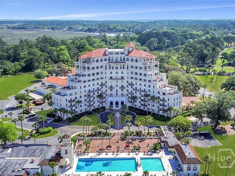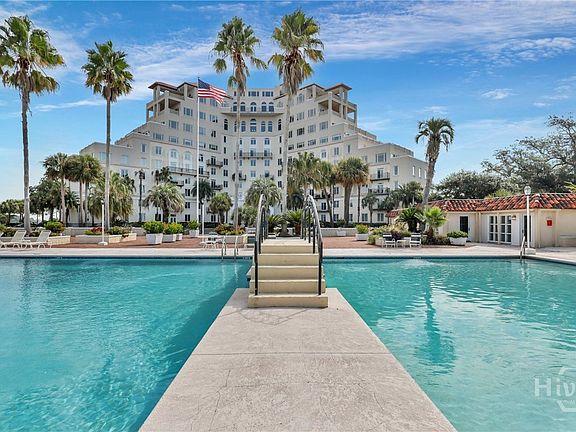 Experience luxury waterfront living with breathtaking views of the Wilmington River and Intracoastal Waterway. Step onto the terrace through sliding glass doors to enjoy stunning sunsets and the Olympic-sized pool below. Inside, the kitchen features granite countertops, high-end appliances, a breakfast bar and a large pantry. The spacious living room is perfect for entertaining or relaxing by the fireplace. Retreat to generous bedrooms also offering stunning river views. Both suites include floor-to-ceiling tiled showers, double vanities and linen closets. The primary suite adds the luxury of a clawfoot tub and walk-in closet. Set on a historic property, residents enjoy manicured grounds, an elegant lobby, bar, ballroom, clubhouse, and billiard room. Live in timeless luxury between downtown Savannah and Tybee Island.