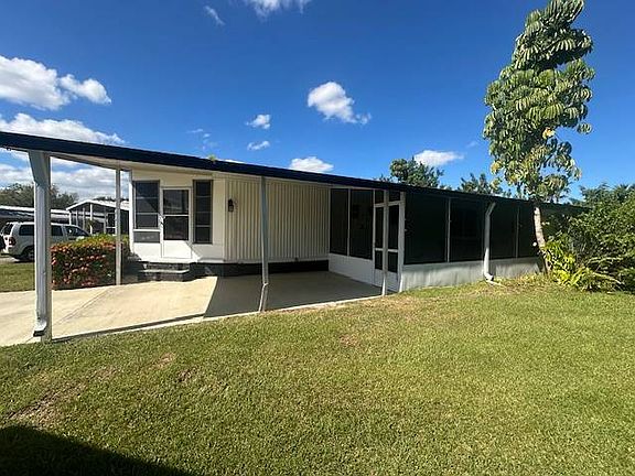 Enjoy relaxed Florida living in this well-cared-for 2BR/2BA home located in the desirable Swan Lake section of Village Green, a welcoming 55+ community in Vero Beach. This charming home offers fresh interior paint and brand-new vinyl flooring, bringing a clean, bright feel throughout. Start your day in the spacious front Florida Room featuring tinted windows-a perfect spot for morning coffee, quiet afternoons, or evening conversations. Inside, the open layout provides comfortable living and entertaining space. The living room opens directly to the Florida room through sliding glass doors, giving you extra room to relax. The kitchen is equipped with all essential appliances and flows directly into the dining area, which features a built-in coffee/breakfast bar and ample cabinetry for storage or display. The large primary bedroom includes its own en suite bath with a walk-in shower. The comfortable guest bedroom is conveniently located near the full guest bath, which features a tub/shower combo and generously sized vanity. Laundry is located in the attached shed for convenience and additional storage. Whether you're seeking a year-round residence or a warm winter getaway, this home offers comfort, convenience, and value! Community & Lifestyle Village Green provides resort-style amenities, including: • Clubhouse with social activities & events • Swimming pool & hot tub • Fitness center • Billiards & game room • Shuffleboard, horseshoes, and tennis • Beautiful community lakes for fishing • RV storage available • Lawn care included Lot Rent: $1,118/month, which includes lawn maintenance and use of all community amenities. Just minutes away, enjoy Atlantic beaches, golf courses, the Vero Beach Outlet Mall, medical facilities, dining, and entertainment. Additional Information All information is deemed reliable but not guaranteed. Buyer must verify lot rent, fees, and community rules with park management. Measurements are approximate. Financing may be available through third-party lenders. Sales price does not include tax or dealer/administrative fees. Please contact the sales agent for additional details