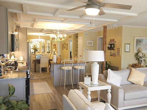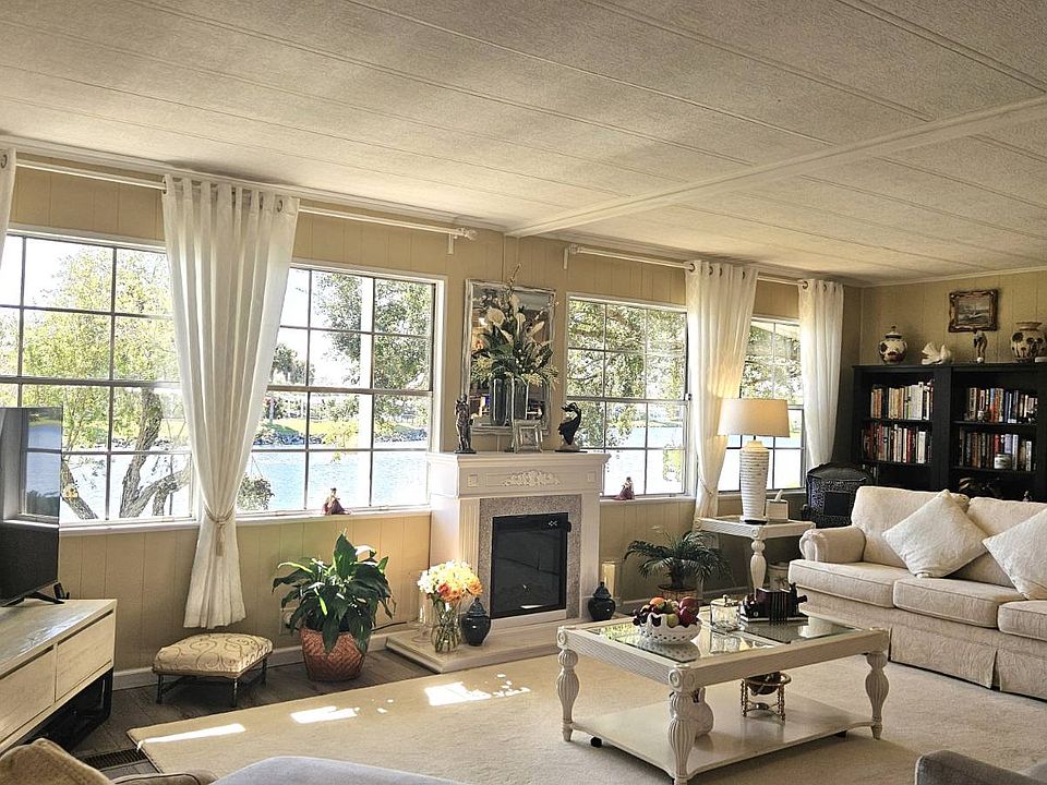 This charming manufactured home offers the highly sought-after lifestyle of waterfront living. Perched on a serene lot with unobstructed views of the Lake right from your living room, kitchen, dining room, and even your Florida Room, this property is a rare find for anyone dreaming of peaceful mornings and fun-filled afternoons on the water. The surprisingly spacious interior features a bright and open floor plan, perfect for family and loved ones gathering during the holidays or throughout the year. With 2 bedrooms and 2 bathrooms, it is like no other; it has been meticulously renovated and cared for, not to mention the pride and joy of its owners. There is plenty of space for everyone. The home has been previously updated with granite countertops, stainless steel appliances, new laminate flooring throughout, and has been newly painted, ensuring a move-in-ready experience. It also comes with beautiful furnishings. The expansive fully equipped outdoor kitchen area is designed for recreation or hosting a barbecue with the perfect lakeside backdrop, or spend your mornings or evenings enjoying your cup of joe or a glass of wine on your massive outdoor patio. Located in Village Green, a 55-plus community, which offers 3 pools, 3 clubhouses, a tennis court, library, billiards room, and many more amenities. Future residents must be approved by the community ( ELS). It is close to all everyday needs, places of interest, beaches, and our very own Vero Beach International Airport, which is a 5-minute commute. Imagine creating memories with loved ones. This isn't just a home; it's a gateway to a relaxed, recreational lifestyle. Don't miss this rare opportunity to own a slice of paradise. Call to set up a showing or for more information. All listing information is deemed reliable but not guaranteed and should be independently verified through personal inspection by appropriate professionals. Our company does not and cannot guarantee or warrant the accuracy of this information or the condition of this property. Measurements are approximate. The buyer assumes full responsibility for obtaining all current rates of lot rent, fees, and pass-on costs. Additionally, the buyer is responsible for obtaining all rules, regulations, pet policies, etc., associated with the community, park, or home from the community/park manager. Our company is not responsible for quoting said fees or policies. Financing is available through 3rd party lenders. The sales price does not include tax, dealer fees, or administrative fees. Please contact the sales agent for additional information.