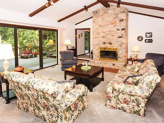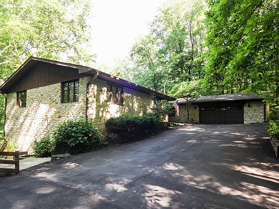 Welcome to a serene setting where you can enjoy privacy, picturesque views, conveniently located with a heavily wooded 5 acre estate lot. The recently paved driveway rolls back to the property that has an updated kitchen, 2 car attached and 30x45 4 car detached garage. This beautiful ranch with walk out basement features 3 large bdrms on the main level w/updated master bath. Downstairs has 2 bdrm, full bath, kitchen for in-law quarters, large patio, FR and rec area. Schedule a tour today!!