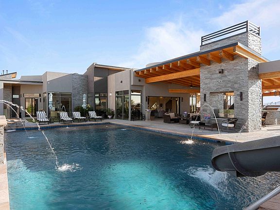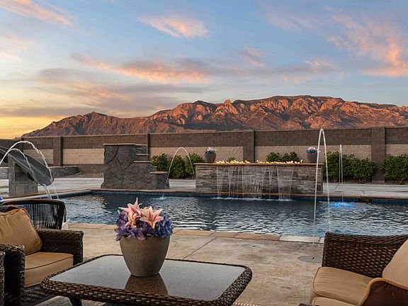 Resort-Style Living in Albuquerque's Most Desired Location. Nestled on over 2 acres on the most coveted street, this exquisite property offers unparalleled panoramic views of the Sandia Mountains and the city, with open space enveloping three sides of the home.The home offers multi-generational living or income opportunities with a fully attached casita, complete with a full kitchen and separate entrance.This architectural marvel boasts high-end finishes and lighting throughout, creating an ambiance of sophistication and elegance. The outdoor oasis features a stunning pool with a slide, a spa, and a fully-equipped pool house. An outdoor shower and a full outdoor kitchen and bar are perfect for entertaining or enjoying tranquil evenings under the New Mexico sky.For car enthusiasts the 8car