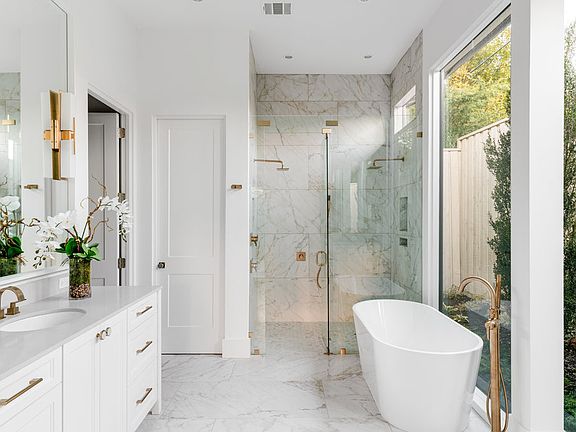 Authentic French Provincial designed in collaboration with Saavy House interiors and architect John Lively & Associates. Upon entering the bespoke all glass entry, you will notice light streaming through panoramic windows into the great room and living spaces. The chefs' kitchen features a quartz island, Fisher Paykel appliances, a walk-in appliance pantry, and floor to ceiling cabinets. The main floor primary suite is a lavish private retreat buffered from the living areas and with an oversized bedroom and sitting area. The spacious spa bathroom has a freestanding tub, curb-less shower, double vanity, and overlooks its own secluded private garden thru large windows. The enormous closet has convenient access to the laundry room. Upstairs you'll find a multi functional game room and wet bar that spans the entire front width of the home + private powder room, and three ensuite bedrooms all with walk in closets. Level 4 Smooth finish walls throughout exude the subtle yet detailed craftsmanship on the surface that also are contained behind the walls. Smart-home systems, built in networks, and extensive high tech cabling make living fun and easy in today's technology driven world. Detailed landscaping and hardscape add to the outstanding curb appeal.