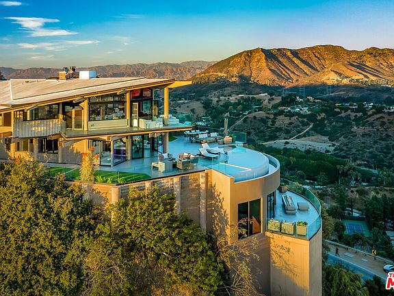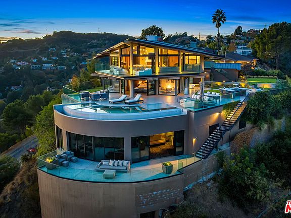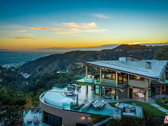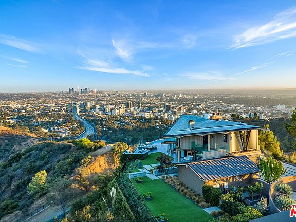 Simply unrivaled. This is the sexiest, most timeless, and architecturally impressive estate in the Hollywood Hills. Designed by Harry Gesner, and set on its own promontory behind private gates, this tour-de-force overlooks some of the most iconic views in all of Los Angeles and boasts extraordinary craftsmanship with a stylistic confluence of modernity and sophistication that redefines all expectations. The top-level offers a chef's kitchen, spacious living and dining area with a custom-built bar, and separate office. Down the elevator, the owner's suite and bathroom have unparalleled views of the Hollywood Sign and the city skyline behind the infinity pool. The recording studio, detached from the main house, has been fitted with the best equipment the industry has to offer. 2-car garage and plenty of space for additional parking on the courtyard. This reimagined house celebrates the site and our 21st-century lifestyle and will be an architectural beacon for generations to come.