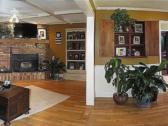 Brick Ranch ~ FINISHED BASEMENT! Fantastic 3-4 bedroom 2.5 brick ranch in a great North side neighborhood. You'll find comfortable living in this family room with wood burner , brick hearth fireplace, laminate floors & coiffeured ceiling. The open kitchen and dining room offers updated cabinets, stainless appliances, large pantry & accent bench under the window. Bedrooms are tucked away on the opposite end of the home. Master features 2 closets & full bath. Large hall bath with double vanity is a step away from the other 2 bedrooms. Pinterest inspired black painted doors & decorator touches throughout the home. Finished basement features a wonderful built in custom wet bar, built ins and brick hearth fireplace. Room for pool table and additional finished office or craft room plus storage room round out the fantastic basement. Floor plan is versatile and allows many opportunities to change furniture placement. Large front living room with French doors currently used as a bedroom. Attached 2.5 car garage, laundry room with remodeled bath off, great curved patio, mature trees, basketball pad, goal and fully fenced yard makes this a wonderful home for entertaining. Per seller Roof 2011, Windows 2008.
