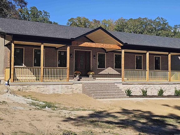 This all-brick new construction home is located outside the city limits on 4.46 level acres with a small pond. The front and back porches stretch across the house and feature tongue-and-groove wood ceilings. Inside, the open floor plan includes a spacious kitchen with abundant cabinetry, a large island, gas cooktop, wall oven with microwave, a coffee bar, and a walk-in pantry. There is also a dedicated office space. Two guest rooms are on one side of the home, and the primary suite is on the other. The primary ensuite offers two vanities, a large tiled walk-in shower, soaking tub, and two walk-in closets—one with direct access to the laundry room for convenience. The property includes a 1,200 sq ft garage and offers the peaceful setting of country living just minutes from town. See agent remarks.