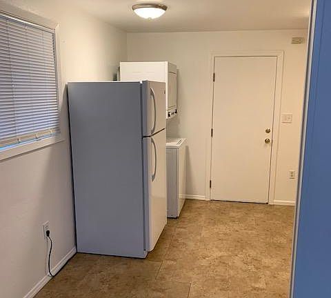 This is a small three-bedroom, one bath apartment in a fenced courtyard fourplex. Newer paint inside and outside, newer carpet, nice hickory cabinets in kitchen. Washer, dryer, fridge, stove and AC are in the unit. Main heat is gas with baseboard heat available in each bedroom, if needed. There is a small, fenced backyard behind each apartment. One space for off-street parking. It is located on a quiet street and is one block away from Brentwood Park, Lane Middle School, the Brentwood-Darlington Community Center and an Oregon Food Bank pantry. Two different elementary schools are 10-12 blocks away. Public transport is nearby needing only a 3-5 minute walk. I-205 freeway access is a seven-minute drive. Shopping in Woodstock. Call Pat for appointment.