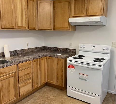 Small fenced backyardHickory cabinets in kitchenNewer carpet