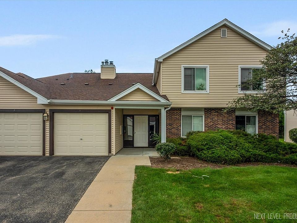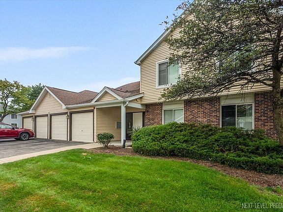 Welcome home to this 2-bedroom, 2-bath condo with no one above you! The bright and airy living room features newer sliding glass Andersen doors that fill the space with natural light, laminate floors, a ceiling fan with light, and a cozy gas log fireplace with gas starter. The dining room is conveniently located just off the kitchen-ideal for entertaining. The updated kitchen boasts stainless steel appliances, newer cabinets with crown molding, a neutral tile backsplash, and a sleek pull-out faucet. The adjoining eating area overlooks the backyard and opens to a composite balcony, perfect for relaxing while enjoying the mature landscaping. The spacious primary suite offers a large walk-in closet, ceiling fan with light, and a private renovated bath featuring a stylish gray-and-white diagonal tile design, vanity with white cabinets, newer lighting and mirror, and a step-in shower with glass doors and built-in towel bar. The second bedroom includes a generous closet and ceiling fan, with the updated guest bath just across the hall-complete with gray-and-white finishes, tile flooring, a shower/tub combo with a grab bar, and modern vanity with lighting. Additional conveniences include an in-unit laundry room with gas hook-up and white cabinetry for extra storage. All sliding glass doors and windows have been replaced with high-quality Andersen windows and sliding doors for peace of mind and energy efficiency. Other newer updates include the water heater, and garage door. Location is a dream-just over a mile to I-355, and minutes from shopping, dining, and everyday amenities.