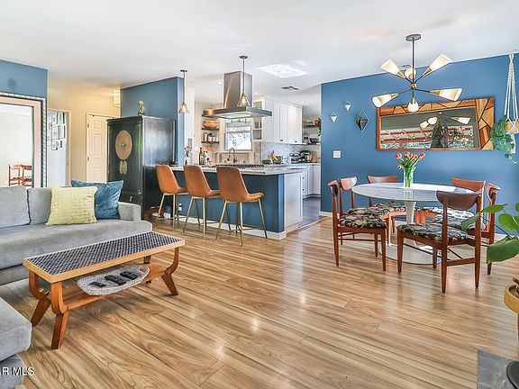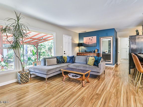 Ideally located ultra private corner lot in a great neighborhood. This chic revamp of a traditional ranch c.1953 consists of three good size bedrooms and a very open floor plan. Perfectly showcases Southern California's indoor-outdoor lifestyle. The one-story residence offers Elm wood floors throughout and a newer renovated fireplace facade with in wall HDMI cable and outlet. The kitchen was also recently updated with Caesarstone Quartz countertops, stainless steel appliances, extra storage cabinets, lazy susan, and porcelain tile flooring which opens up to a butcher block desk with shelving for a nice office space. The laundry room is indoors and has good storage. The bedrooms are all good sized and both bathrooms have been upgraded, to include marbled countertops and shower floor. Head into your huge backyard oasis with a large covered patio, and two areas for entertaining. Also detached oversized 2 car garage that can easily be made into a ADU. Centrally located to tons of shopping, restaurants and freeways, not to mention amazing curb appeal with a charming white picket/vinyl fence, you have arrived home.