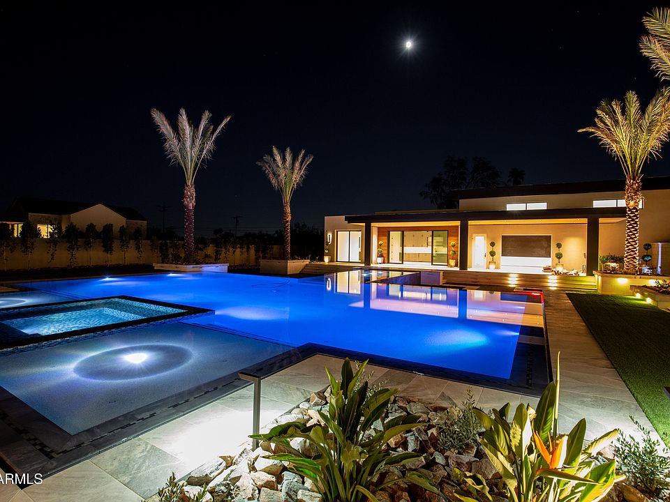 COMPLETION DATE is 10/18/2025! Here's another breathtaking contemporary estate built by Patterson Homes. This masterpiece has 9146 sq.ft., 6 bedrooms, 6.5 bathrooms, 4 car garage at the main house, and a poolside 889 sq.ft. guest house attached to a 58 ft. RV garage. The RV garage includes a side entry garage door perfect for your golf cart and all terrain vehicles. This is truly a work of art combining elegance, sophistication, class as it showcases an expansive pool area, game room with fully equipped bar, and a formal dining room with wine wall and fireplace. The great room features wall to wall glass doors overlooking the pool area in all its serenity, and impeccably designed modern fireplace. Don't forget the gourmet kitchen which is sure to satisfy your inner chef, boasting an inviting island, top of the line stainless appliances, and butler's pantry with prep kitchen in addition to the walk in pantry. With a primary suite this inviting and spacious you may never want to leave. Get ready for pure comfort in this extravagant suite that offers a floor to ceiling stone fireplace, sprawling custom walk-in closet, Brizo plumbing fixtures, and a sizable therapeutic shower. The guest suite and all additional bedrooms are ensuite with walk-in closets for maximum comfort. All this and more situated on 1.09 acres. Your Dream Home awaits.