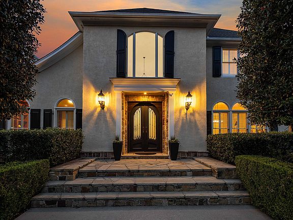 From the moment you enter, the grand two-story foyer commands attention with its sweeping curved staircase, soaring ceilings, and statement chandelier that sets the tone for the home's impeccable design. Natural light pours through oversized windows, highlighting rich hardwood floors and thoughtful architectural details found throughout.